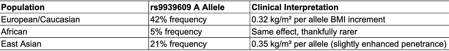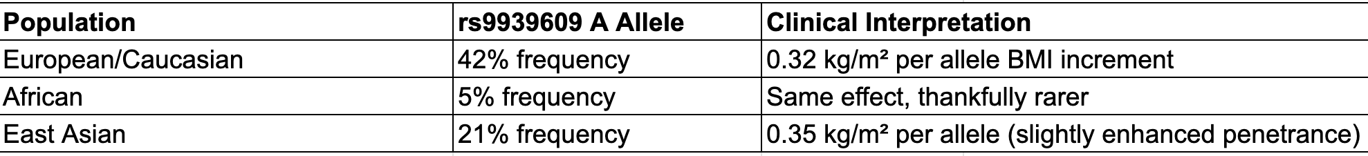 Recent systematic reviews have fundamentally altered our understanding of FTO-mediated obesity. Risk carriers don't just respond to treatment—they respond with statistical enthusiasm that borders on the remarkable: